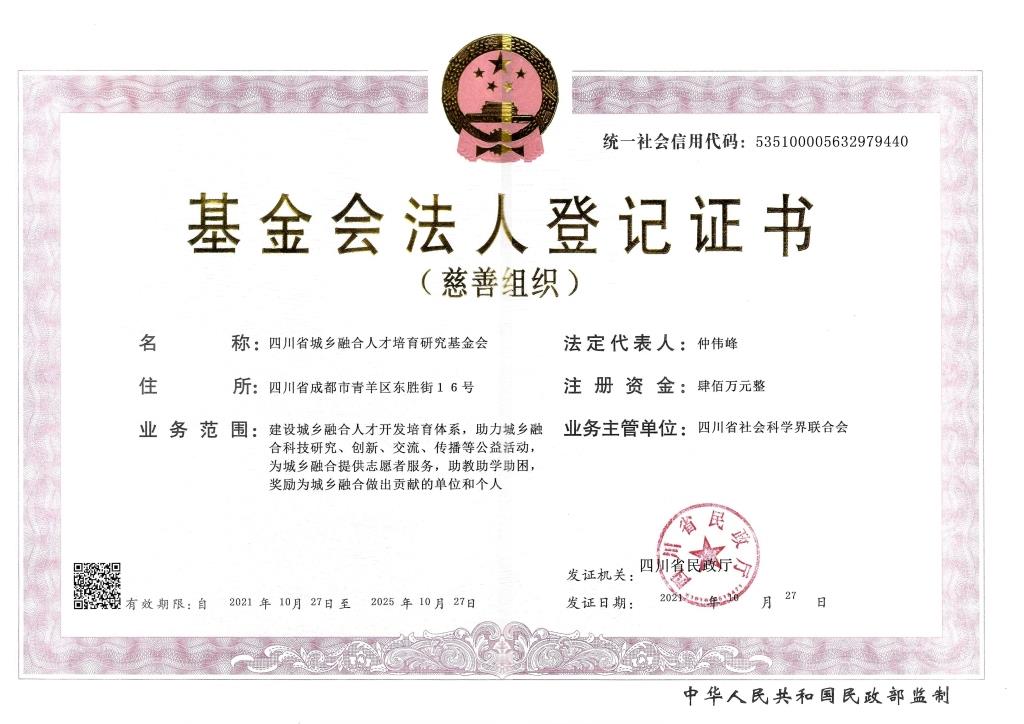 四川省城乡融合人才培育研究基金会